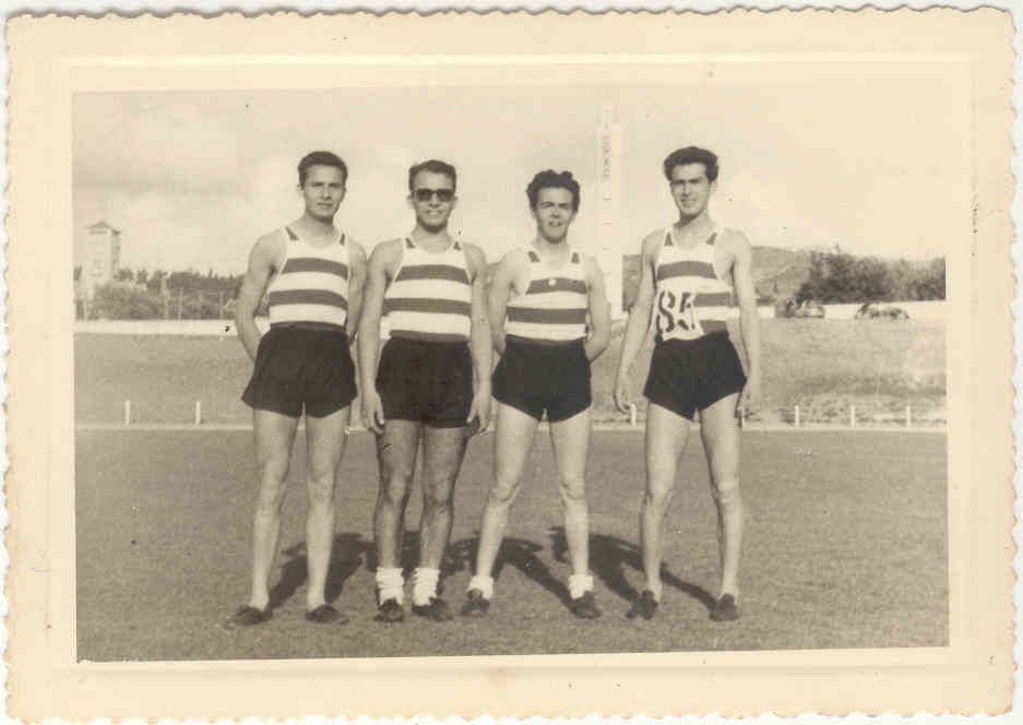 Equipa vencedora do campeonato nacional na categoria de Principiante na prova de 4x300m em 1956/67. Da esquerda para a direita: Pinto dos Santos, Álvaro Costa, Francisco Lemos e Peixeiro