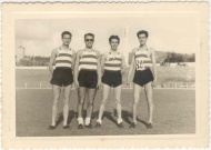 Equipa vencedora do campeonato nacional na categoria de Principiante na prova de 4x300m em 1956/57. Da esquerda para a direita: Pinto dos Santos, Francisco Lemos, Álvaro Costa e Peixeiro