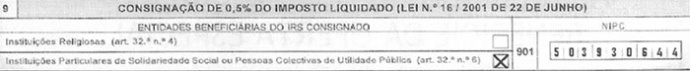 A Lei permite que 0,5% do seu IRS já liquidado reverta a favor de uma Instituição Particular de Solidariedade Social, podendo optar pelos Leões de Portugal.